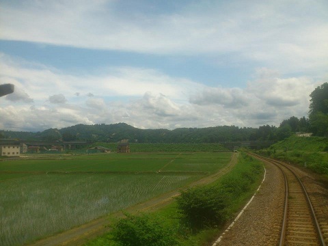 *視察移動中、JR飯山線車内より撮った写真。米の産地としても有名ですね。田んぼが広っています。新潟は、今回訪れた小千谷、十日町、塩沢の着物のほかに、燕三条が有名で、着物にとらわれない物造りが盛んな場所と言えます。歴史的な背景であるほかに、今回の視察で感じたのは、新潟の厳しい気候条件が物造りを発展させた要因であると思います。厳しい気候条件とは、言わずもがな「豪雪地帯が多いこと」です。今回訪れた塩沢紬の産地「塩沢」では、毎年11月から雪が降り始め、5月中旬まで残雪があるようです。つまり、一年の約半分が雪の中の生活になるのです。最大積雪は3メートルにも及び、報道で写真をご覧になったことのある方は多いのではないかと思います。